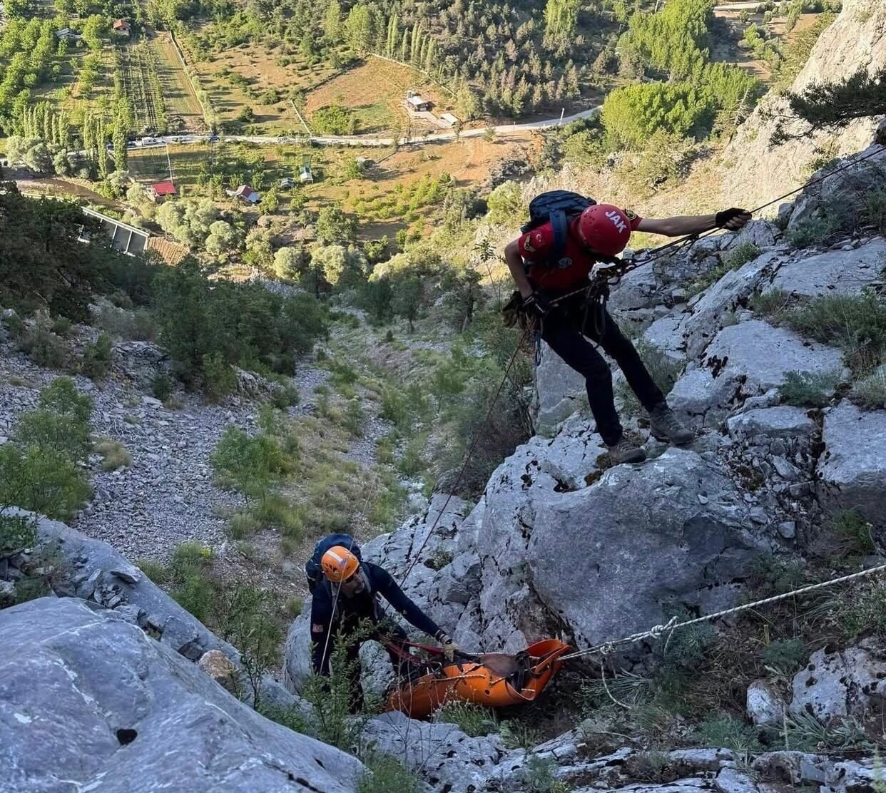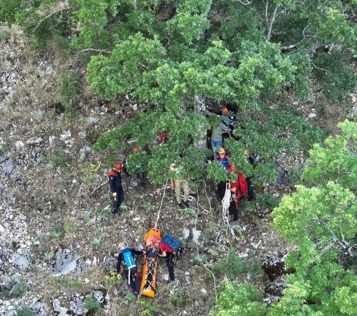 Olay, Aksu ilçesindeki Zindan Deresi mevkiinde bulunan kayalık alanda meydana geldi. Edinilen bilgilere göre, ıhlamur toplamak amacıyla yaklaşık 300 metre yükseklikteki kayalıklara çıkan emekli polis memuru Mehmet Erol (76), dengesini kaybederek düşüp 20 metre sürüklendikten sonra yaralı halde kayalık alanda mahsur kaldı. Erol’un yardım çığlıklarını duyan vatandaşlar durumu 112 Acil Çağrı Merkezi’ne bildirdi. İhbar üzerine bölgeye AFAD, jandarma ve sağlık ekipleri sevk edildi. Zorlu arazi şartlarında yürütülen çalışmada ekipler, Erol’a ulaşarak ilk müdahaleyi olay yerinde yaptı. Yaralı adam sedyeyle yaya olarak yaklaşık 1 saat süren taşıma çalışması sonucu güvenli bölgeye indirildi.