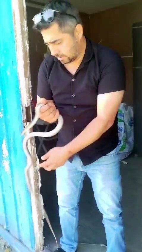 İnsanlar korkularından konteynere giremezken o elleriyle 1 metrelik yılanı yakaladı