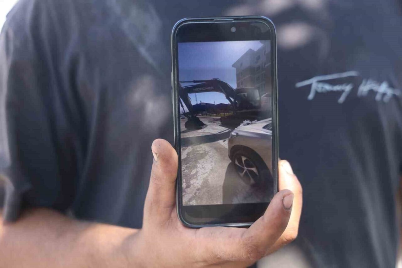 HATAY’DA YIKIM İŞLERİ YAPAN UĞUR HÜSNÜOĞLU, İŞ MAKİNESİYLE GELİN ARABASININ YOLUNU KESTİĞİ ANLAR SOSYAL MEDYADA YÜZLERİ GÜLÜMSETTİ.