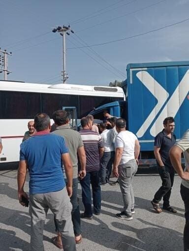İşçi servisi, kargo kamyonuyla çarpıştı