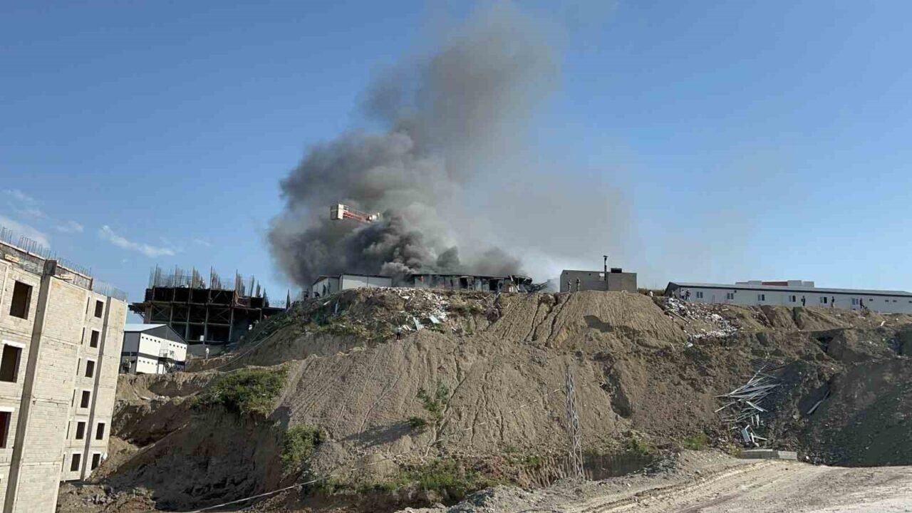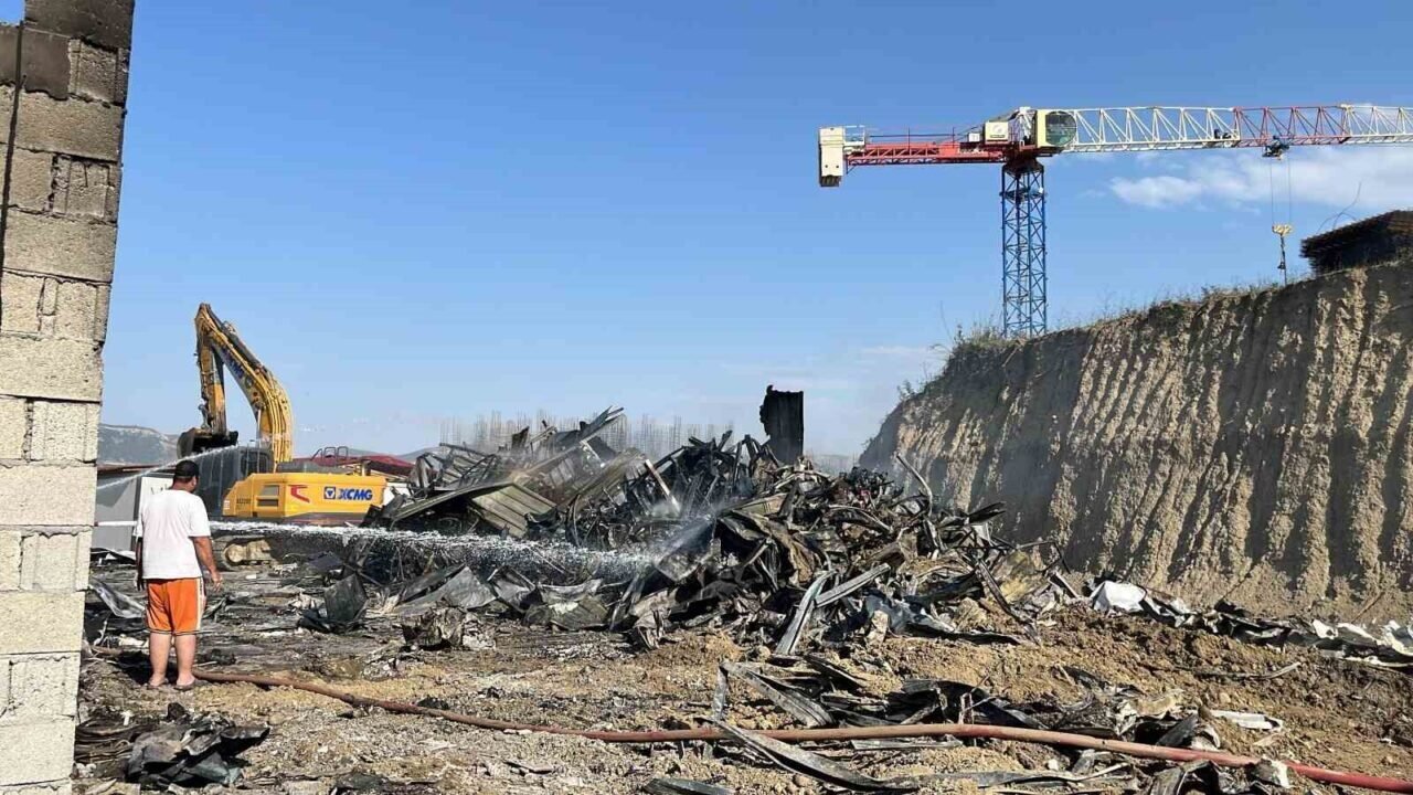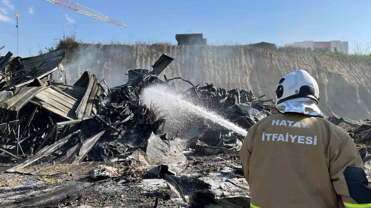 Hatay’ın Defne ilçesindeki şantiye alanında çıkan yangında, işçilerin kaldığı konteyner yatakhane kullanılamaz hale geldi.