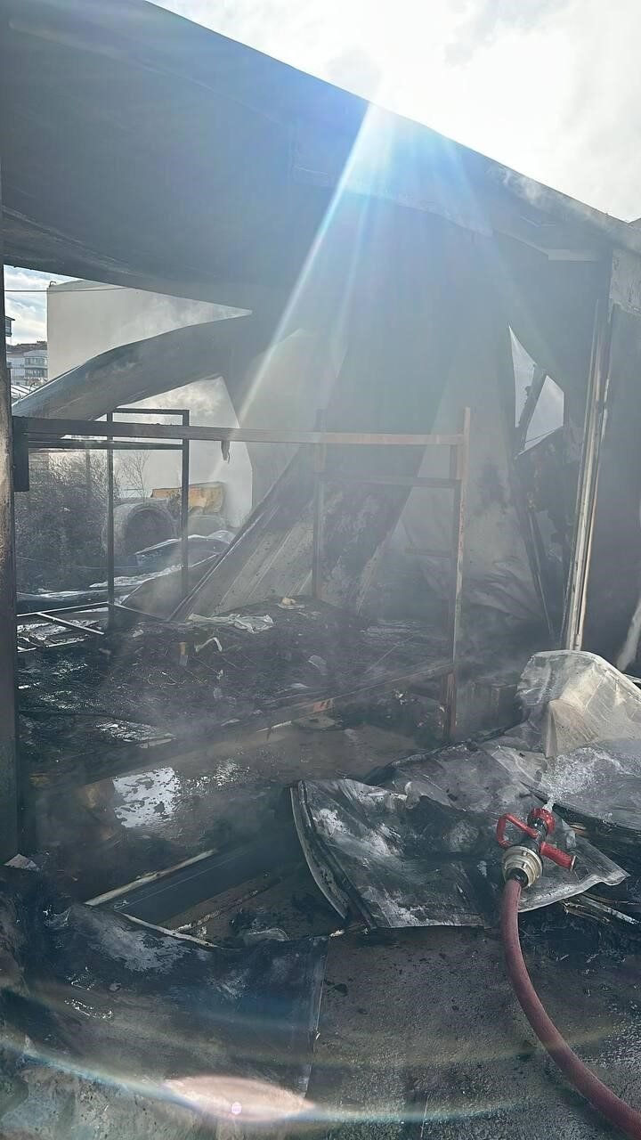 İşçilerin kaldığı prefabrik lojmanda yangın çıktı