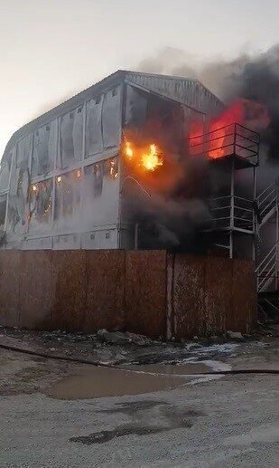 İşçilerin kaldığı prefabrik yatakhane alevlere teslim oldu
