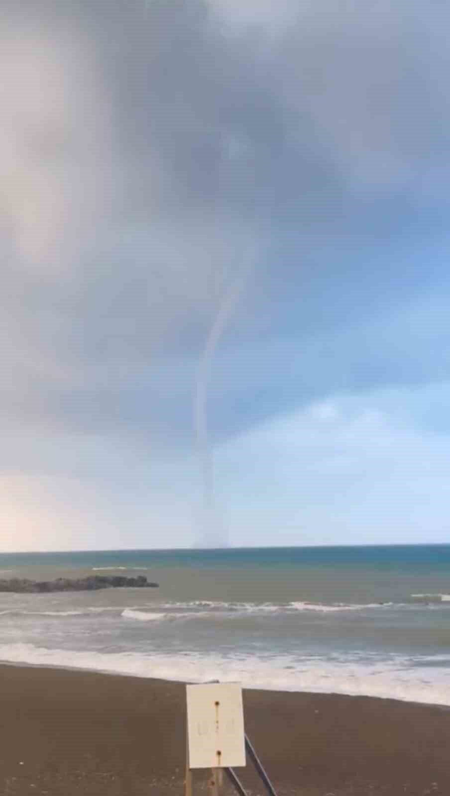 HATAY (İHA) – HATAY’IN İSKENDERUN KÖRFEZİ’NDE DENİZ ÜZERİNDE OLUŞAN HORTUM, VATANDAŞLAR TARAFINDAN CEP TELEFONU KAMERASIYLA GÖRÜNTÜLENDİ. KISA SÜRELİ PANİĞE NEDEN OLAN DOĞA OLAYI, KARAYA ULAŞMADAN ETKİSİNİ YİTİRDİ.
