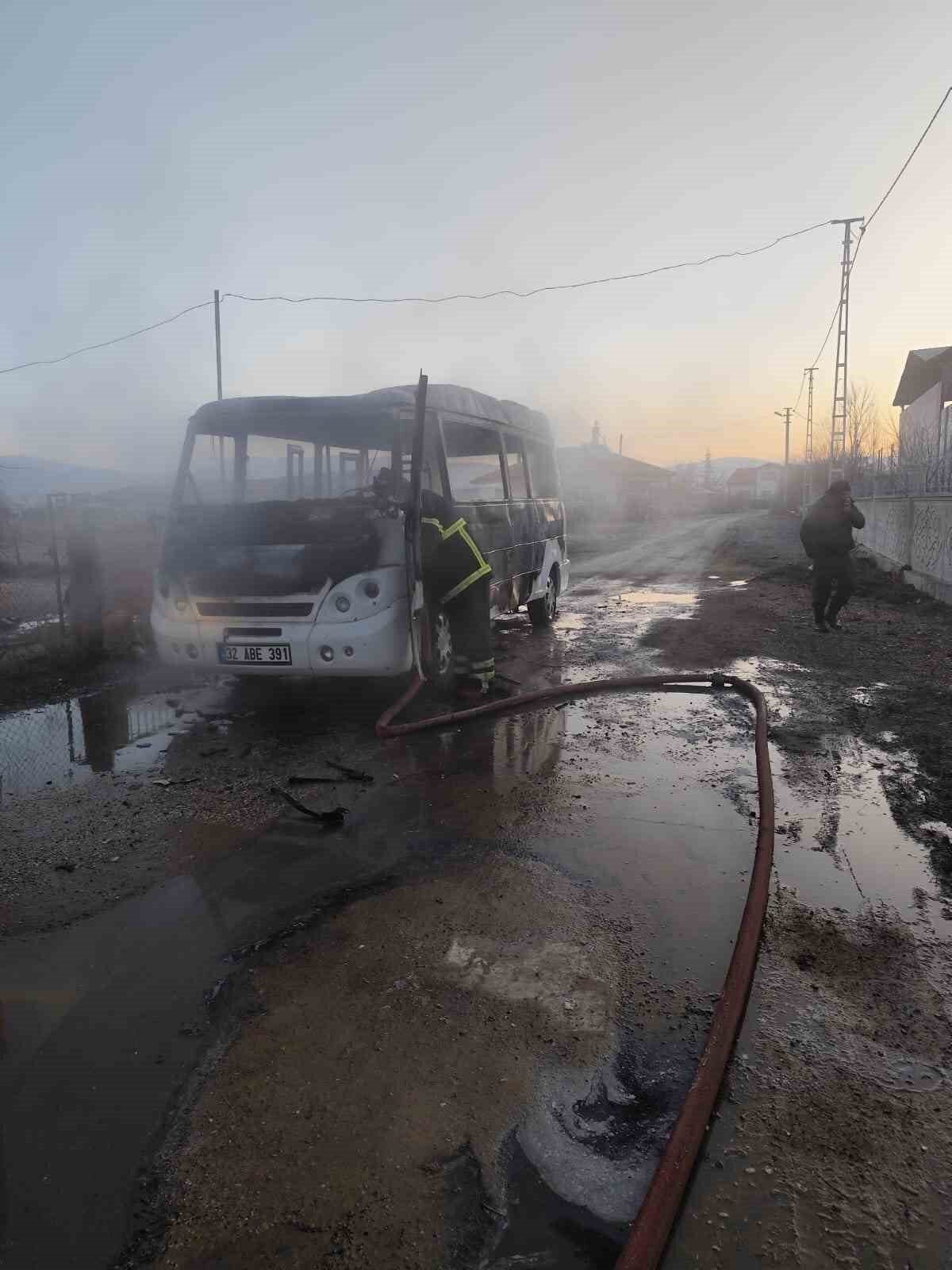 Isparta’da seyir halindeki bir öğrenci servisi aniden alev aldı. Sürücünün hızlı müdahalesi sayesinde içeride bulunan iki öğrenci yara almadan kurtulurken, yangın itfaiye ekiplerince söndürüldü.