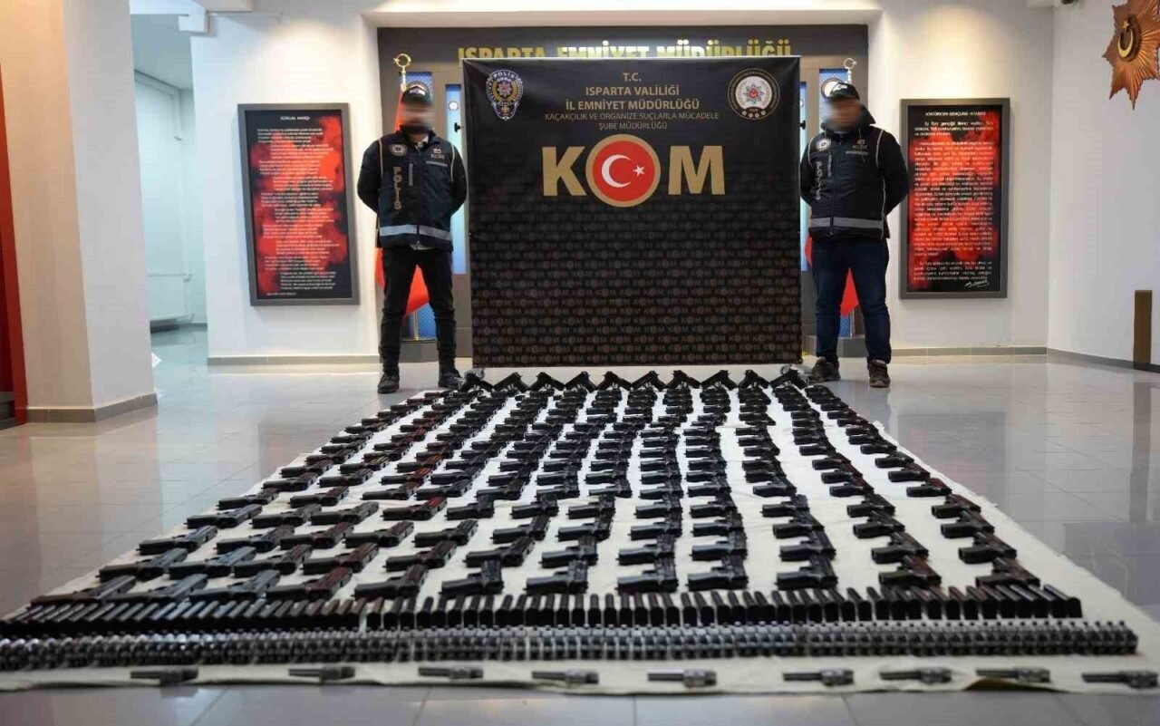 Isparta Emniyet Müdürlüğü ekipleri, Eğirdir Cumhuriyet Başsavcılığı’nın yürüttüğü soruşturma kapsamında durdurdukları iki araçta yaptıkları aramada 230 ruhsatsız tabanca, 220 şarjör, 250 namlu ve 250 fişek yatağı ele geçirdi. Olayla ilgili N.G., R.B., A.B. ve F.A. isimli şüpheliler gözaltına alındı. Şüpheliler, emniyetteki ifadelerinin ardından çıkarıldıkları mahkemece tutuklanarak cezaevine gönderildi.