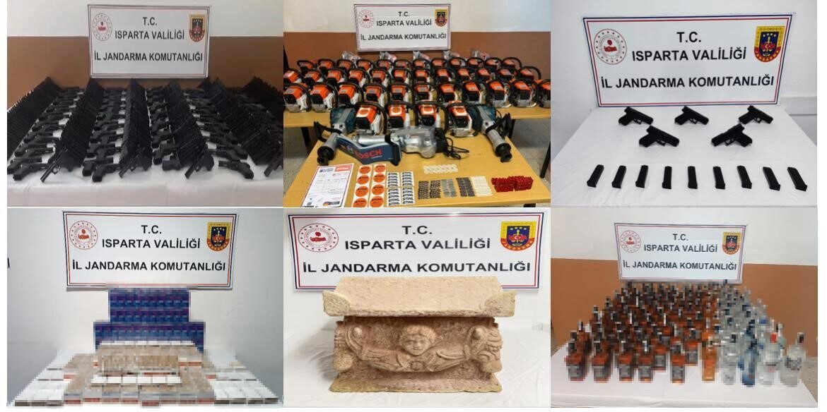 Isparta İl Jandarma Komutanlığı ekiplerinin 2024 yılında silah ticareti, tarihi eser kaçakçılığı ve kaçak ürünlere yönelik düzenlediği operasyonlarda çok sayıda kaçak ürün ve tarihi eser ele geçirilirken, toplam 55 şüpheli hakkında işlem yapıldı.
