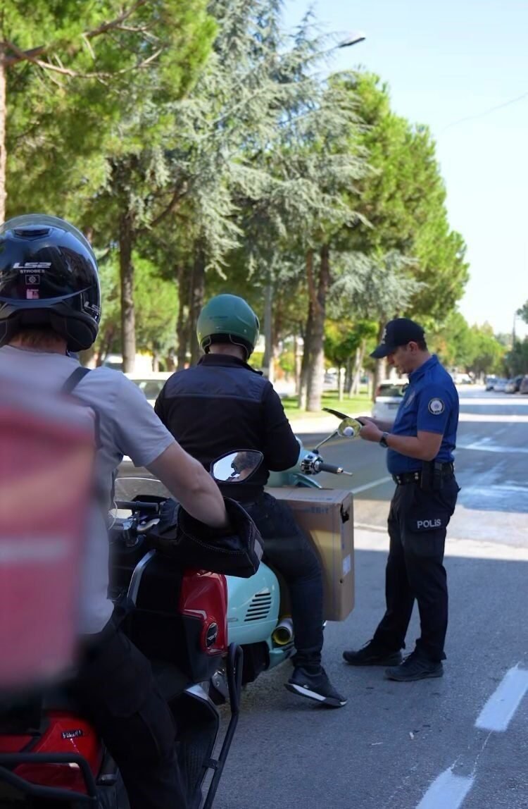 Isparta İl Emniyet Müdürlüğü Trafik Şube Müdürlüğü ve sivil ekipler tarafından dün, kent genelinde motosiklet ve motorlu bisikletlere yönelik özel denetim gerçekleştirildi. Toplam 75 ekip ve 150 personelin katılımıyla yapılan uygulamalarda, 468 motosiklet ve sürücüsü denetime tabi tutuldu. Denetimlerde; kask takmayan, kırmızı ışık ihlali yapan, yaya yollarını ve kaldırımları kullanan, ters yönde seyreden, tescil plakası mevzuata aykırı olan, sürücü belgesi yetersiz ya da belgesiz olan, alkollü araç kullanan, abartı egzozla çevreyi rahatsız eden sürücülere yönelik işlem yapıldı. Kurallara uymadığı tespit edilen 120 motosiklet sürücüsüne idari para cezası uygulanırken, 39 motosiklet de trafikten men edildi.