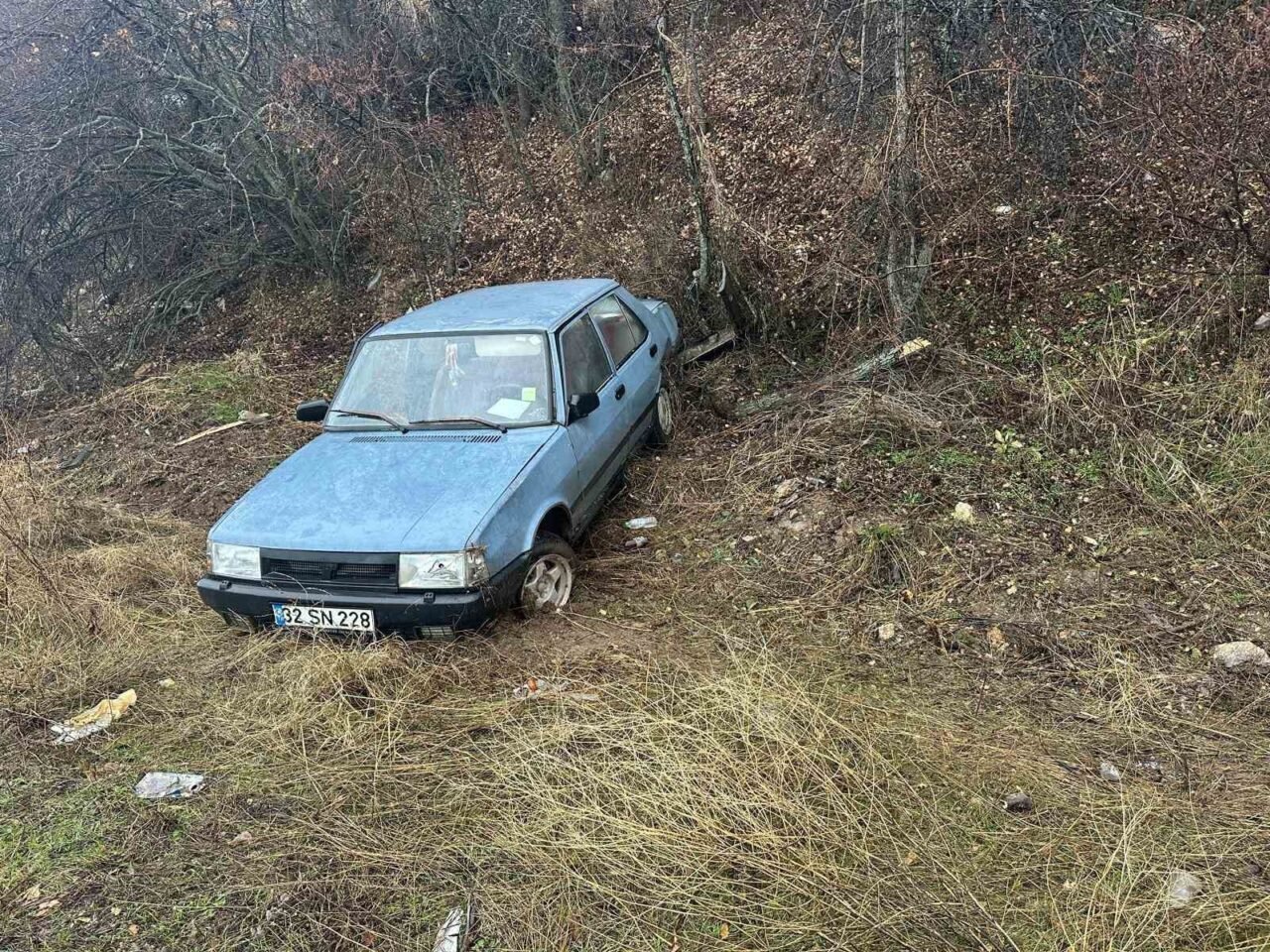 Isparta’da şarampole yuvarlanan Tofaş otomobildeki 2 kişi yaralandı