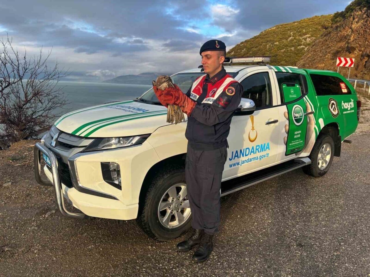 Isparta’da yaralanan kızıl şahin, jandarma ekiplerinin çabalarıyla kurtarıldı