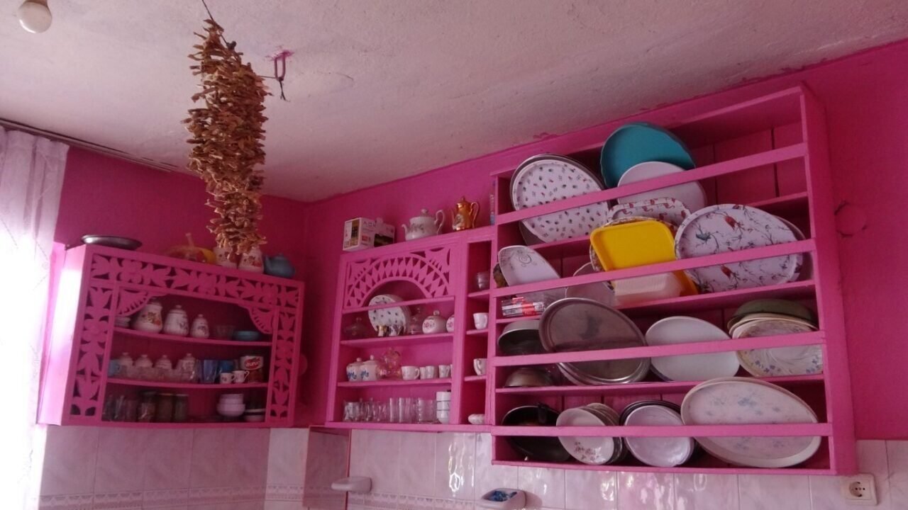 Isparta’nın merkeze bağlı Sav beldesinde yaşayan 75 yaşındaki Sakine Akkul, bulduğu her şeyi pembeye boyuyor. Yaşadığı evin her detayını pembeye boyayan Sakine teyze, pembe eviyle dikkat çekiyor. Tek katlı evinin dış kapısından duvarlarına, evin içerisinde bulunan süs eşyalarına kadar pembeye boyayan Akkul, pembe aşkının küçük yaşlarda başladığını söyledi.
