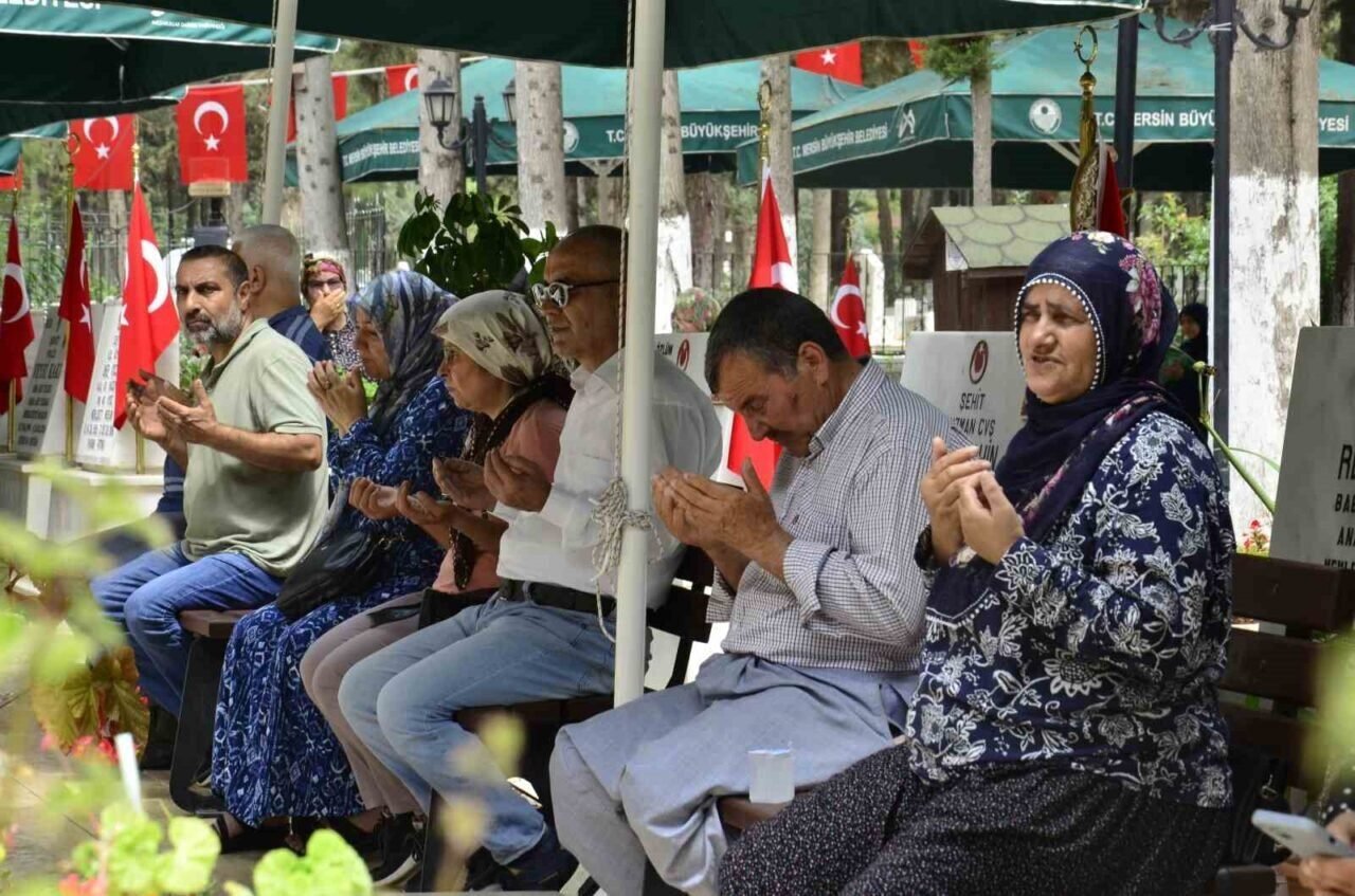 Toroslar ilçesi Akbelen Mahallesi’nde bulunan Mersin Şehir Mezarlığı’ndaki şehitlikte gerçekleştirilen törene, İl Jandarma Komutanı Tuğgeneral Ercan Atasoy’un yanı sıra şehit aileleri, gaziler ve kent protokolü katıldı. Törende Kur’an-ı Kerim okunarak şehitler için dualar edildi. Ardından protokol üyeleri, şehit mezarlarına gül bıraktı. Ziyaret sırasında duygulu anlar yaşanırken, Tuğgeneral Atasoy, gaziler ve protokol üyeleri, şehit aileleriyle tek tek selamlaşarak başsağlığı dileklerini iletti.