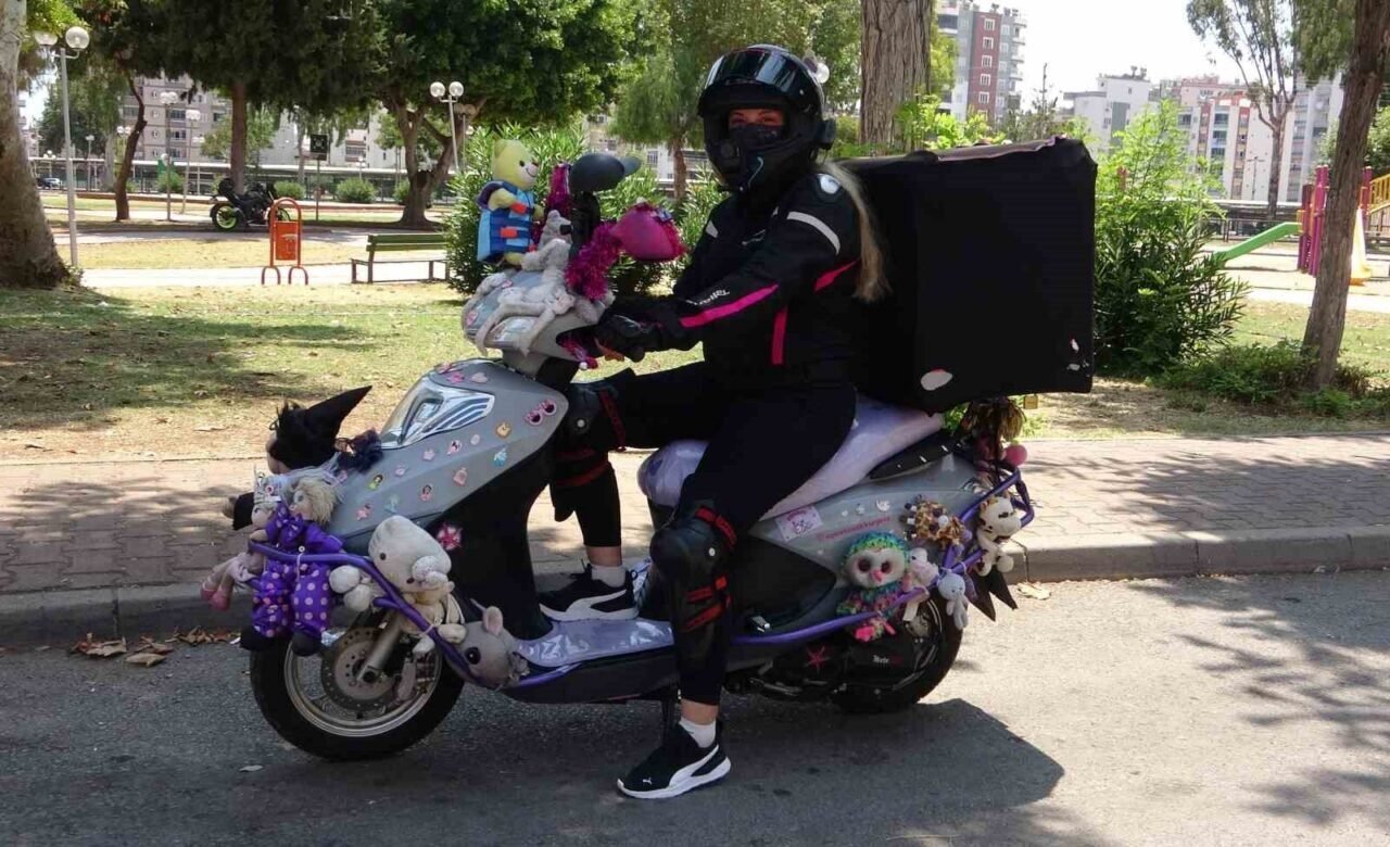 Mersin’de , motosikletini peluş oyuncak ve renkli aksesuarlarla süsleyen kadın kurye, trafikte hem çocukların hem de yetişkinlerin ilgisini çekiyor. Renkli motosikletiyle adeta görsel şölen sunan kurye, vatandaşların yoğun ilgisiyle karşılaşıyor.