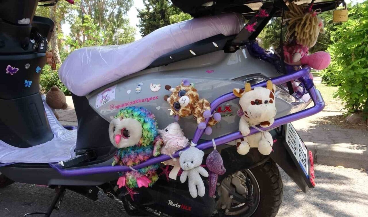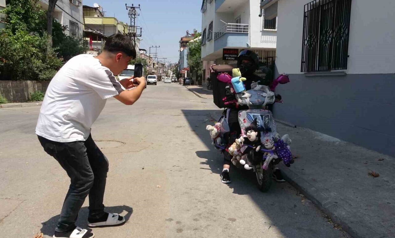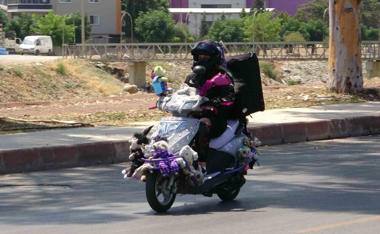 Mersin’in Akdeniz ilçesinde kurye olarak çalışan 25 yaşındaki Bilgehan Aydoğdu, motosikletini peluş oyuncaklar, renkli aksesuarlar ve çeşitli figürlerle süsleyerek trafikte dikkatleri üzerine çekiyor. Rengarenk motosikletiyle kent sokaklarında dolaşan Aydoğdu, özellikle çocukların yoğun ilgisiyle karşılaşıyor. Oyuncaklara olan ilgisini motosikletine yansıtan Aydoğdu, bu süslemeyle hem kişisel tarzını ortaya koyuyor hem de trafikte bir kurye olarak diğer araçlarca daha kolay fark edilmek istiyor. Görenleri gülümseten motosiklet, vatandaşlar tarafından sık sık cep telefonlarıyla görüntüleniyor. Bazı sürücüler trafikte motosikleti durdurup yakından inceliyor, çocuklar ise oyuncaklara dokunmak ya da almak istiyor. Renkli görünümüyle adeta bir görsel şölen sunan motosiklet, her yaştan insanın ilgisini çekiyor.