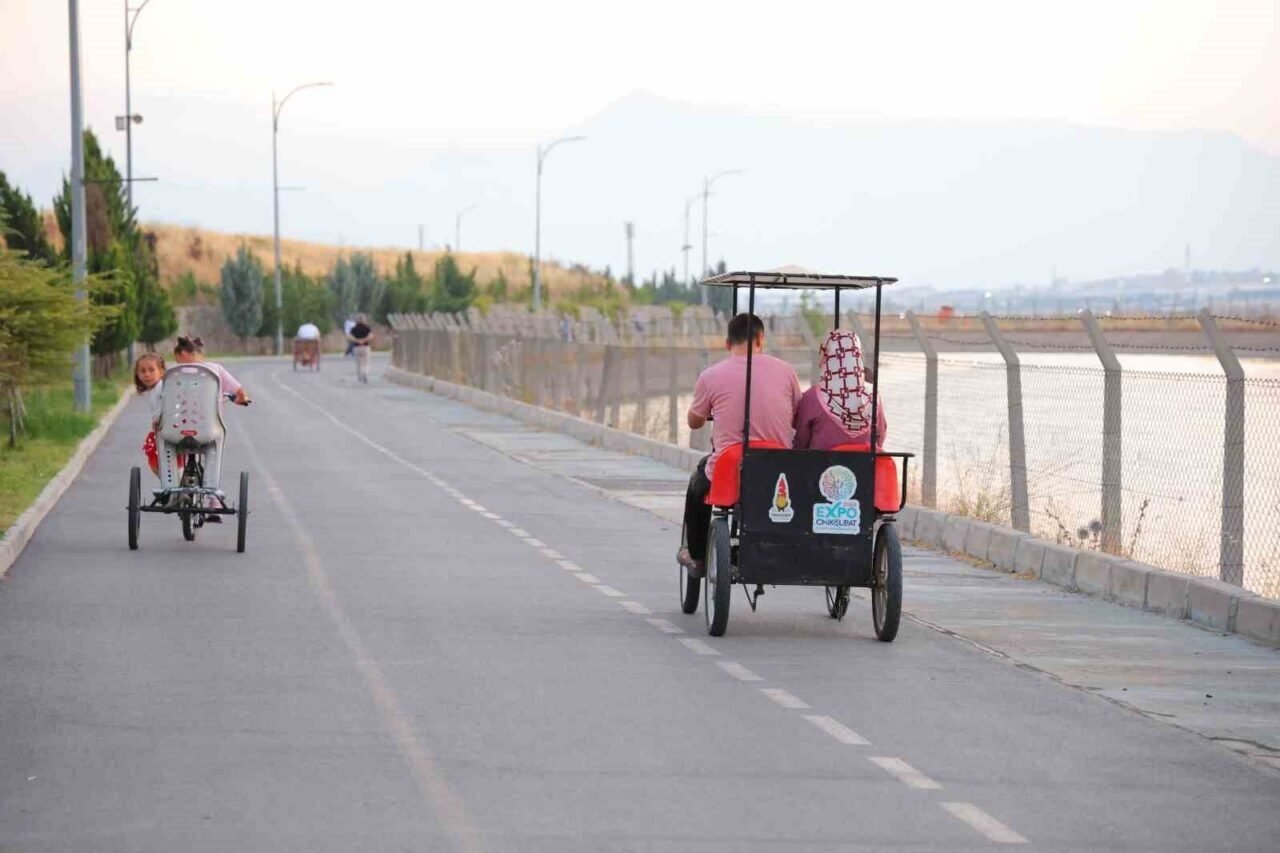 Şehirde sağlıklı yaşamı teşvik etmek amacıyla Onikişubat Belediyesi tarafından hayata geçirilen proje kapsamında 9 kilometre uzunluğunda kesintisiz bisiklet ve yürüyüş parkuru ilgi görmeye devam diyor. Proje, 6 farklı kondisyon alanı, 720 bisiklet otoparkı, 240 araçlık otopark, bin 976 metrekarelik model uçak pisti ve 560 metrekarelik kafeterya alanıyla dikkat çekiyor. Sosyal tesis bünyesinde 130 annenin bebekleriyle birlikte kullanabileceği konforlu bisikletler ile 2, 4 ve 6 kişilik aile bisikletleri de yer alıyor. Aynı anda bin kişinin rahatlıkla yürüyüş yapabildiği parkur, yaklaşık 3 bin kişilik kapasiteyle hem yürüyüş hem de bisiklet kullanımına imkan sağlıyor.