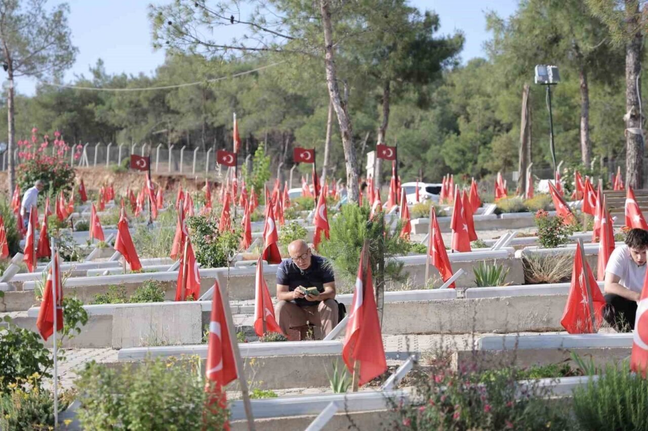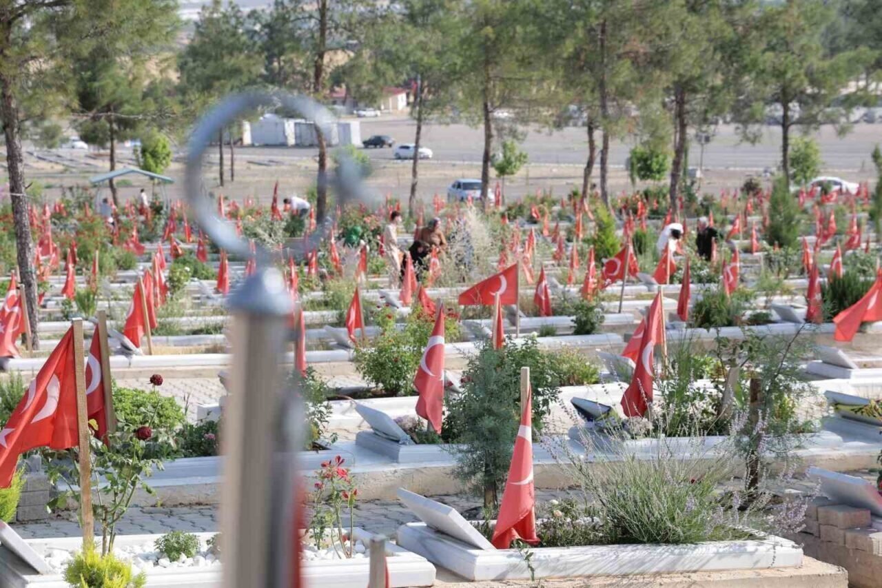 Kurban Bayramı’nın birinci gününde 6 Şubat depremlerinde hayatını kaybedenlerin defnedildiği Kapıçam Şehir Mezarlığı’nda hüzün hakim oldu. Sabahın erken saatlerinden itibaren mezarlığa gelen vatandaşlar, kabirleri temizledi, çiçek bıraktı, su dökerek Kur’an-ı Kerim okuyup dua etti. Depremde eşini, çocuğunu, anne-babasını kaybeden çok sayıda vatandaşın mezar başında gözyaşlarını tutamadığı görüldü. Bazı vatandaşlar mezar taşlarını okşayarak dua ederken, bazıları ise yanlarında getirdikleri su bidonlarıyla mezarları yıkayıp güller bıraktı.