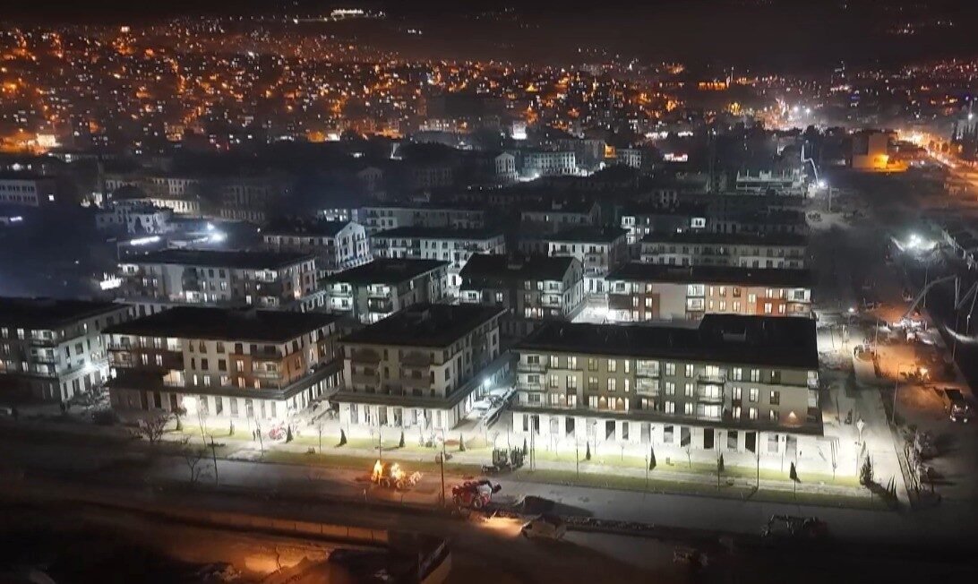 Kahramanmaraş’ta 6 Şubat depremlerinin ardından inşa edilen deprem konutları, akşamları ışıklandırılarak şehrin silüetine yeni bir estetik katıyor. Dron ile kaydedilen görüntülerde, yapım aşamasındaki ve tamamlanan konutların ışıklandırılması izleyenleri mest ediyor.
