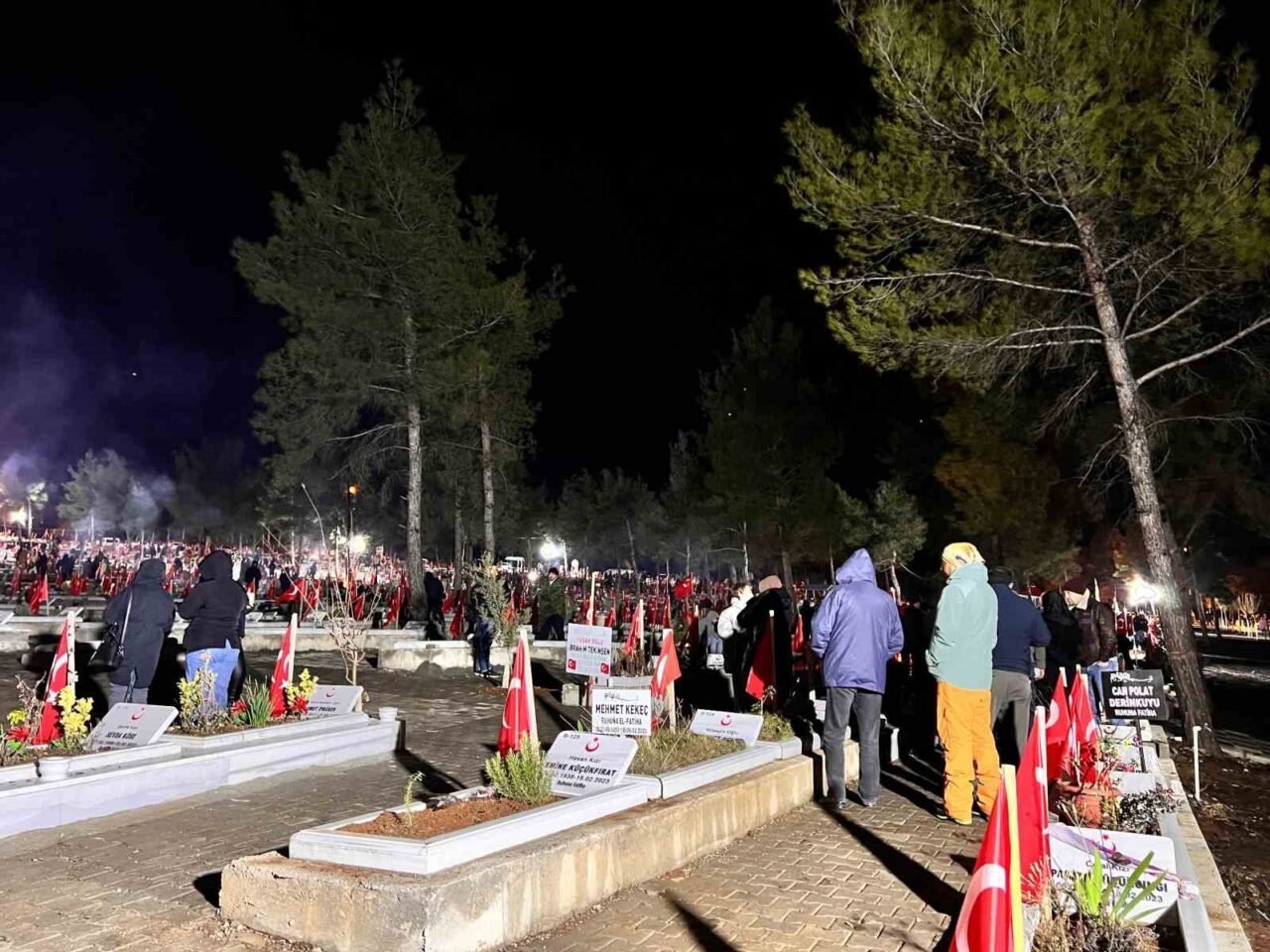 Kahramanmaraş’ta 6 Şubat 2023 depremlerinin yıl dönümünde, felakette hayatını kaybedenlerin yakınları gece saatlerinden, sabahın erken saatlerine kadar mezarlıklara akın etti. Depremin vurduğu kentte, en büyük mezarlıklardan biri olan Dulkadiroğlu ilçesindeki Kapıçam Mezarlığı, saatler 04.17’yi gösterdiğinde hüzünlü anlara sahne oldu.