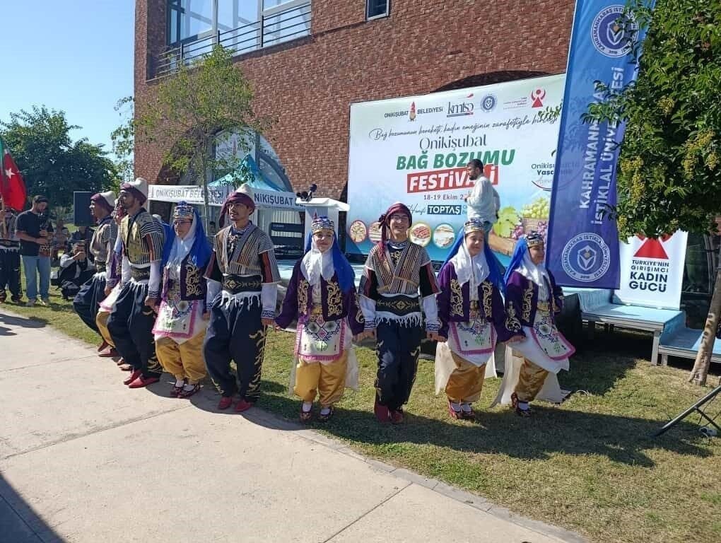 Kahramanmaraş’ın Onikişubat ilçesinde, üzüm hasadının bereketini ve kadın emeğinin zarafetini bir araya getiren Bağ Bozumu Festivali başladı. Festivalde yöresel ürünler, gastronomi atölyeleri ve kadın üreticilerin el emeği stantları yer aldı.