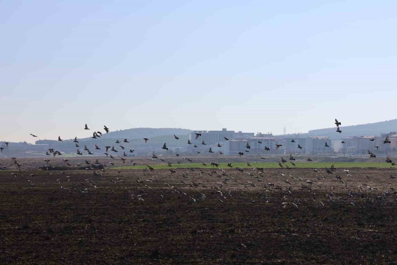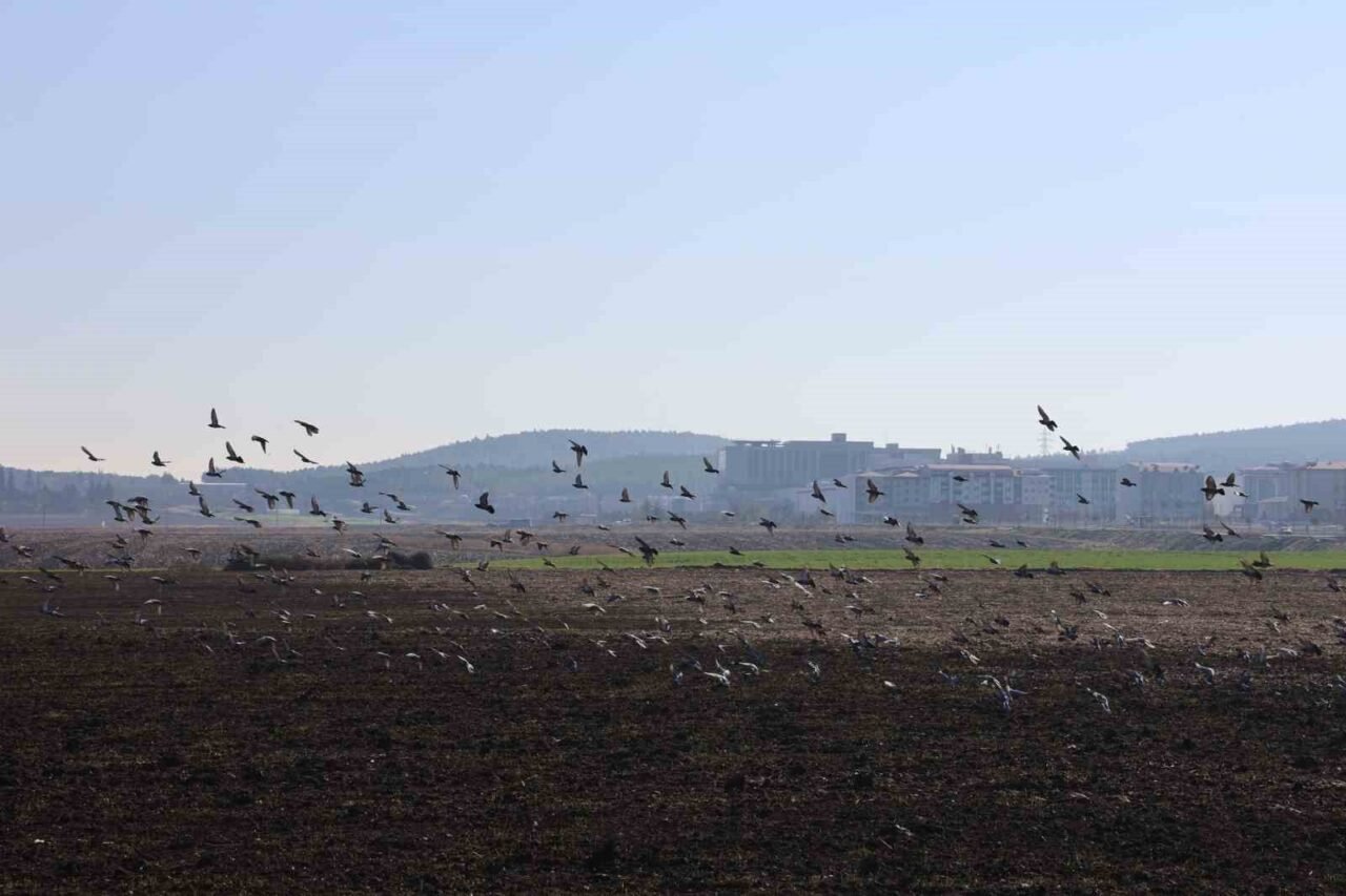Kahramanmaraş’ta sürü halinde uçan güvercinler görsel şölen oluşturdu.