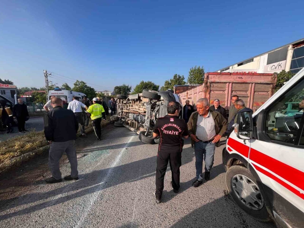 Kaza, Onikişubat ilçesi Şazibey Mahallesi’nde meydana geldi. A.B. idaresindeki 46 S 0679 plakalı servis minibüsü ile T.E. yönetimindeki 48 H 0681 plakalı otomobil kavşakta çarpıştı. Yaşanan kazada servis minibüsü devrildi. İhbar üzerine olay yerine itfaiye, polis ve sağlık ekipleri sevk edildi. Kazada otomobilde 2, servis minibüsünde 10 kişi olmak üzere 12 kişi yaralandı. Ambulanslarla kentteki çeşitli hastanelere kaldırılan yaralıların sağlık durumlarının iyi olduğu öğrenildi.