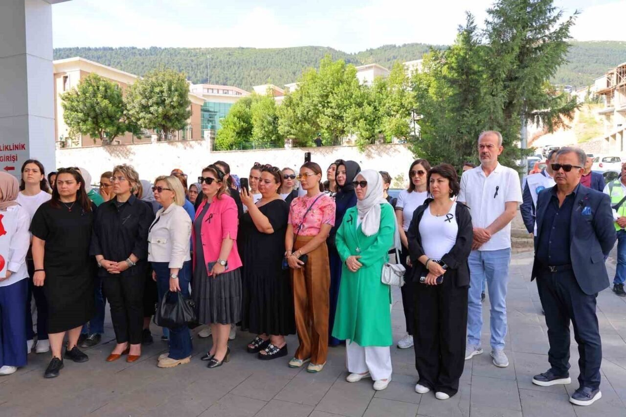 Kahramanmaraş’ta boşandığı eşi tarafından çalıştığı hastanede silahlı saldırıya uğrayarak hayatını kaybeden sağlık çalışanı 2 çocuk annesi Eser Karaca için görev yaptığı özel hastanede sağlık çalışanları ve hekimler tarafından basın açıklaması yapıldı. Yapılan açıklamada, kadın ve sağlıkta şiddet lanetlendi.