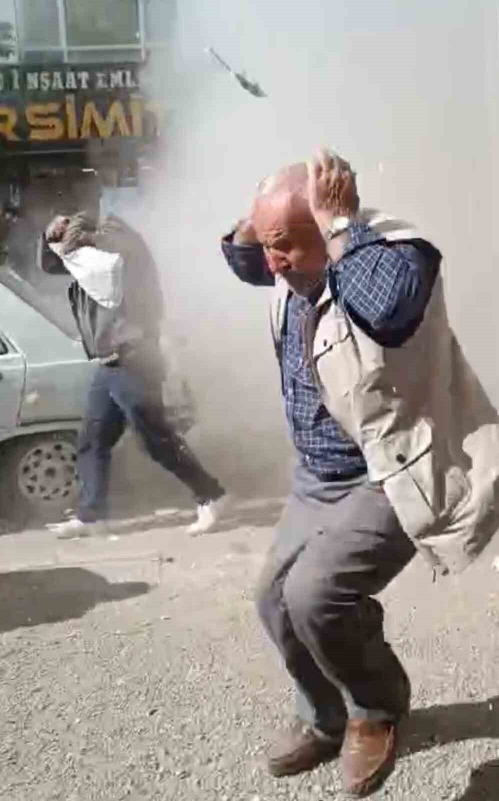 Kopan moloz ve beton parçaları çevredeki iş yerlerine ve yola kadar sıçradı. O sırada seyir halinde ilerleyen araçların üzerine düşen parçalar, sürücüler arasında panik oluşturdu. Araçlarda maddi hasar meydana gelirken, çevredeki vatandaşlar büyük korku yaşadı. O anlar ise kameralara yansıdı.