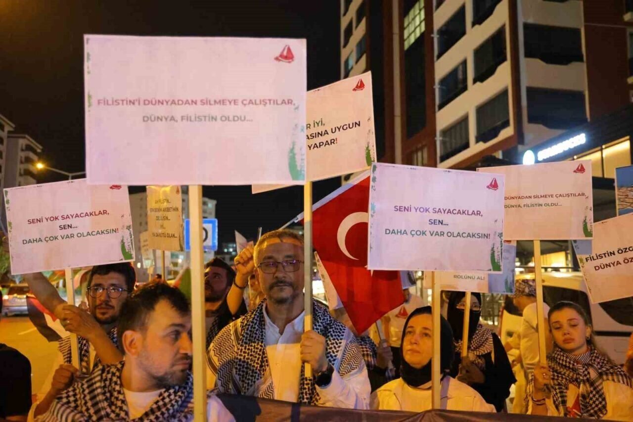 Esra Börekçi ise, “Filistin’deki zulümden bu yana evlerimizde duramıyoruz. Çok kararlıyız, duruşumuz gayet net, özgür olacak Filistin” dedi.