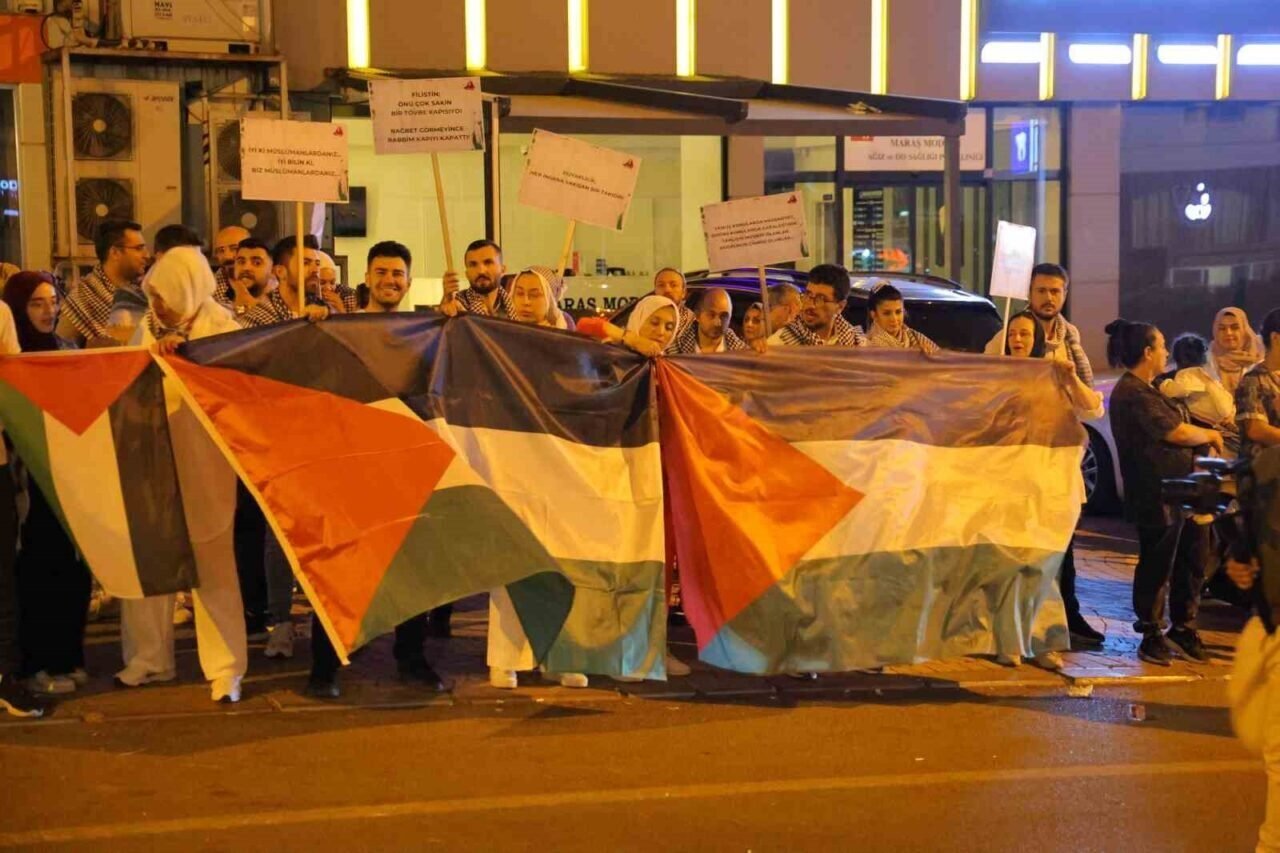 Kahramanmaraş’ta bir grup vatandaş, İsrail’in saldırılarına tepki göstermek ve Filistin’e destek vermek amacıyla gösteri düzenledi.