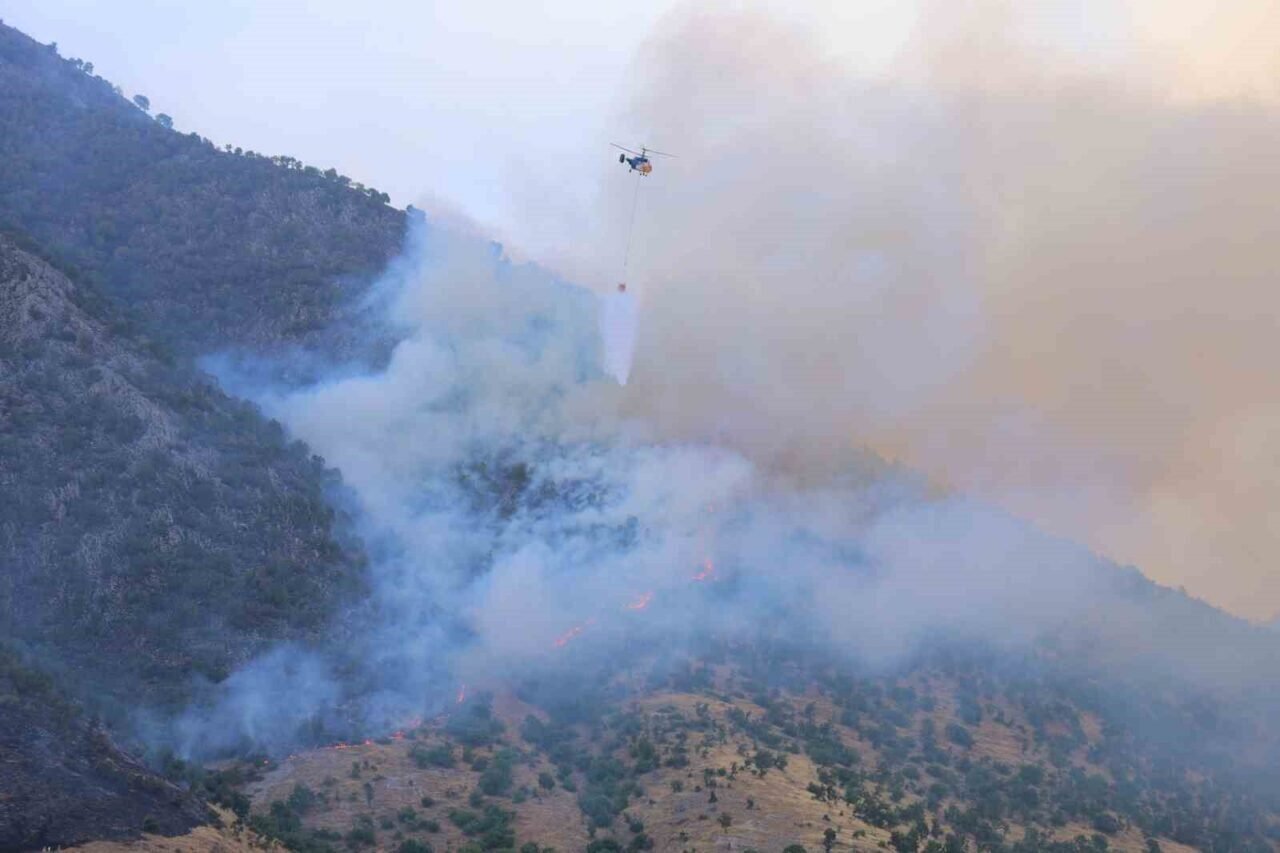 Makilik ve sarp alandaki orman yangının etkisini yitirmeye başladığı, kısa süre içerisinde kontrol alınmasının beklendiği bildirildi.