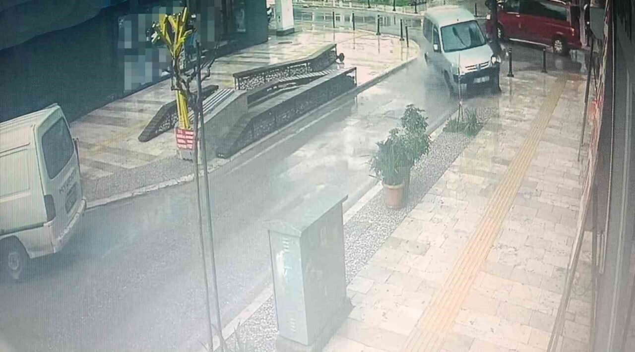 Kaza, Antalya’nın Manavgat ilçesi Aşağı Pazarcı Mahallesi Atatürk Caddesi’nde meydana geldi. Cadde üzerinde seyir halindeki Mehmet Emin T. idaresindeki 07 JC 493 plakalı Peugeot marka hafif ticari araca, Bünyamin Ş.’nin kullandığı Volkswagen marka 07 BFC 292 plakalı kapalı kasa kamyonet çarptı. Güvenlik kamerasına saniye saniyesine yansıyan kazada hafif ticari araç çarpmanın şiddetiyle savrularak kaldırımda bulunan aydınlatma direğine çarparak durabilirken, büyük şans eseri yaralanan olmadı.