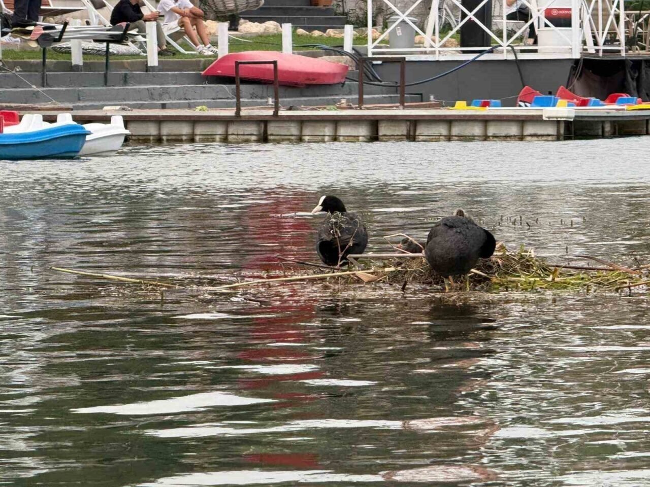Kuşların yuva sürecine tanık olan Taşkın Kozaeker ise “Kuşlar çok muhteşem varlıklar. Buradan geçerken kuşların bu anını görüyorum bana huzur veriyor mutluluk veriyor. Suda yuvayı kuracak bir yer yok ama kuşlar suyun altındaki yosunlara tutundurarak yuva yaptılar” diye konuştu.