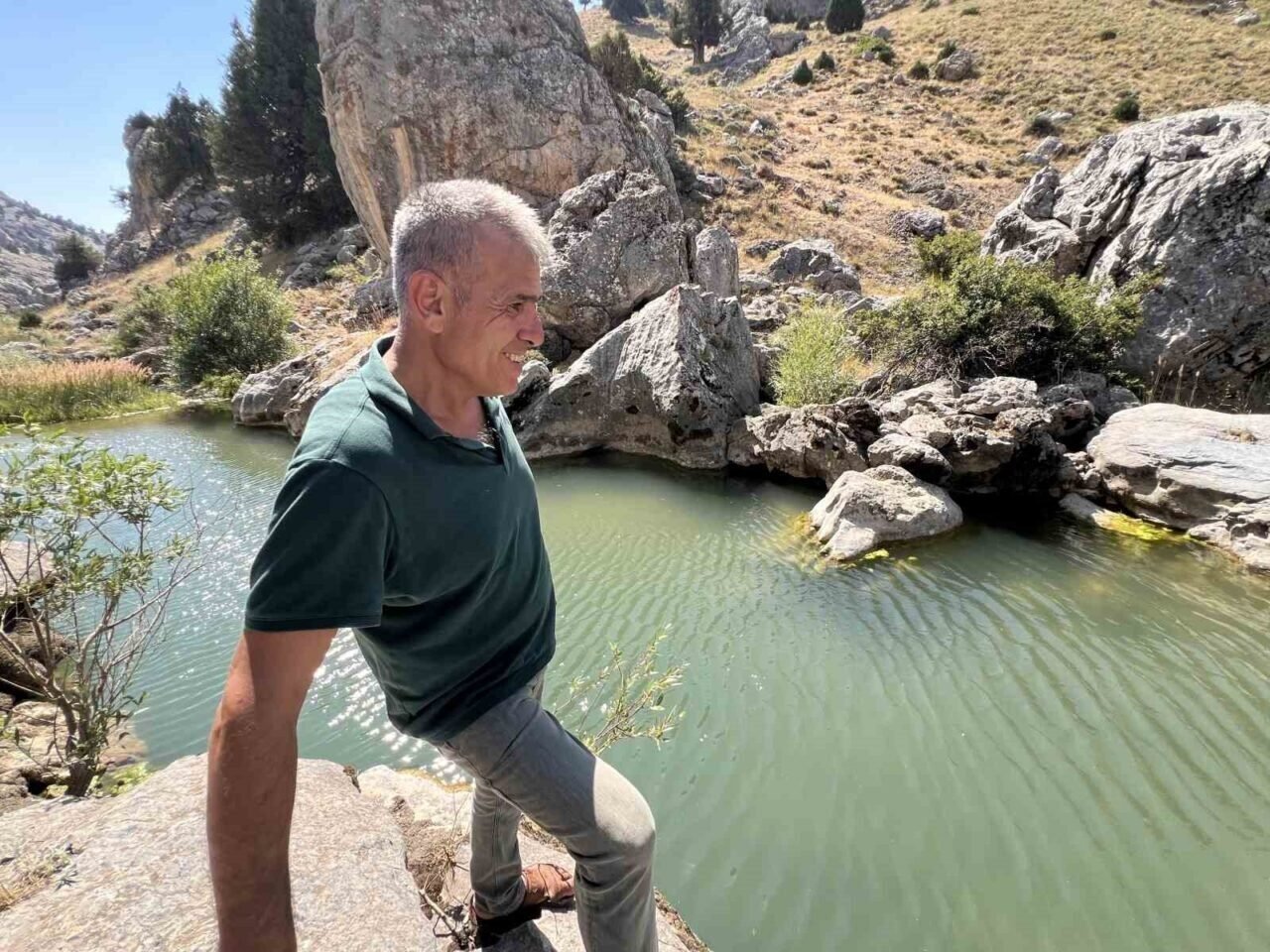 Bölgede yaşayan Niyazi Saygıner, “Burası kuraklık nedeniyle biraz azaldı yoksa çok yüksek ve hızlı akan bir göldür. Buradaki bütün hayvanlar buradan sulanır başka yerde su kalmadığı için. El değmemiş güzelliklerden bir tanesi” dedi.