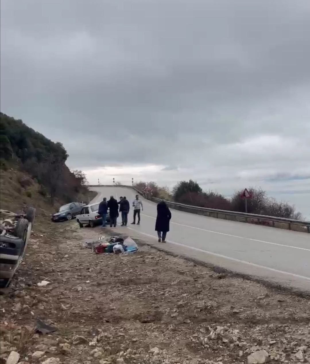 Kazanın ardından saniyeler içinde aynı yönden gelen Murat Y. yönetimindeki 60 NH 112 plakalı Volkswagen marka hafif ticari araç, virajı alamayarak takla attı. Arkadan gelen plakası öğrenilemeyen bir Fiat Tofaş marka otomobil ise kayarak bariyerlere çarptı. Bu sırada aynı yönde ilerleyen Murat B. (62) yönetimindeki 07 ARF 762 plakalı Dacia marka otomobil de kontrolden çıkarak, yol kenarında kazayı izleyen Nuriye Ü.’ye (59) çarptı. Çarpmanın etkisiyle Nuriye Ü. ağır yaralandı. 112 Acil Çağrı Merkezi’ne yapılan ihbar üzerine olay yerine polis ve sağlık ekipleri sevk edildi. Sağlık ekiplerince yapılan kontrollerde kazada yalnızca yaya Nuriye Ü.’nün yaralandığı belirlendi. İlk müdahalesi olay yerinde yapılan Nuriye Ü., ambulansla hastaneye kaldırıldı.