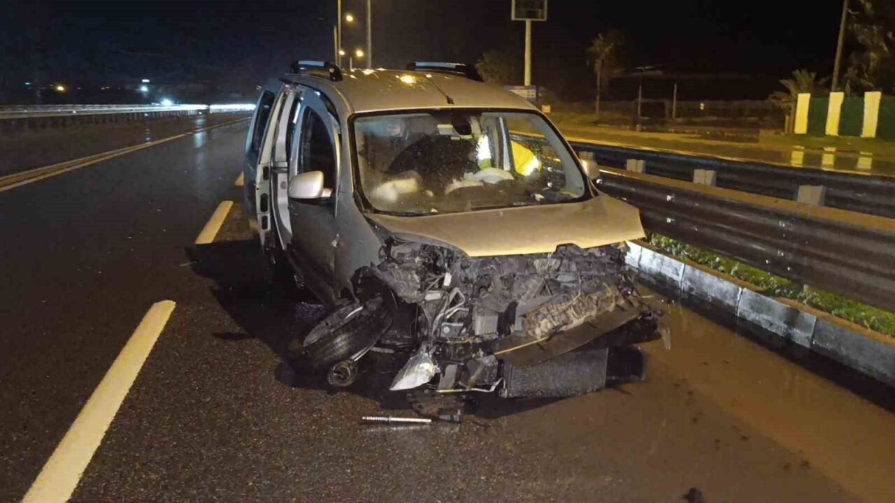 Kaza, Alanya-Manavgat D-400 kara yolunda yaşandı. Edinilen bilgiye göre, Alanya istikametinden Manavgat istikametine seyir halindeki sürücüsü belirlenemeyen 07 ALN 351 plakalı hafif ticari araç, bariyerlere çarptıktan sonra yaklaşık 150 metre giderek Sanayi Köprülü Kavşak girişinde durabildi.