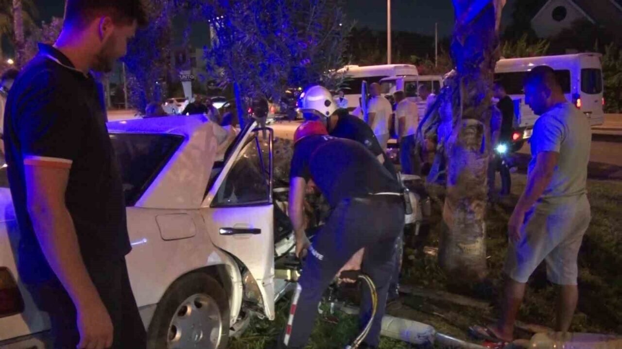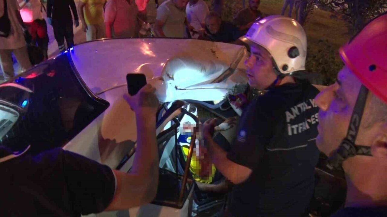 Antalya’da kontrolden çıkarak refüjdeki palmiyeye çarpan araç hurdaya döndü. Araç içerisinde sıkışan sürücüyü vatandaşlar çıkartırken, yanındaki kardeşi ise itfaiye ekipleri tarafından kurtarıldı. Kazayı haber alarak gelen gençlerin babası, acı içinde araçtan çıkartılmayı bekleyen oğlunu “Bekle alacaklar babam seni, metanetli ol. Bir şeyin yok” sözleriyle, yaralanan sürücü kızını da “Her şey gitsin babacım, canımız gitmesin. Hiç korkma kızım tamam mı. Her şey geçecek, kardeşini çıkardılar. Eve gideceğiz” diyerek sakinleştirmeye çalıştı. Araçtan çıkartılan yaralı kardeşler, tedavi için hastaneye götürüldü.