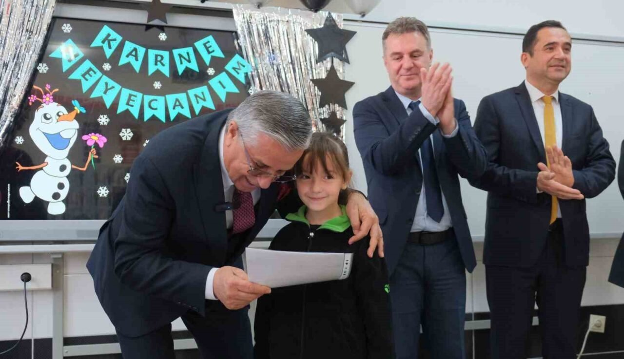 2024-2025 eğitim öğretim yılının ilk yarısının sona ermesiyle birlikte, Kemer Belediye Başkanı Necati Topaloğlu, Mustafa Rüştü Tuncer İlkokulunda düzenlenen karne törenine katıldı.