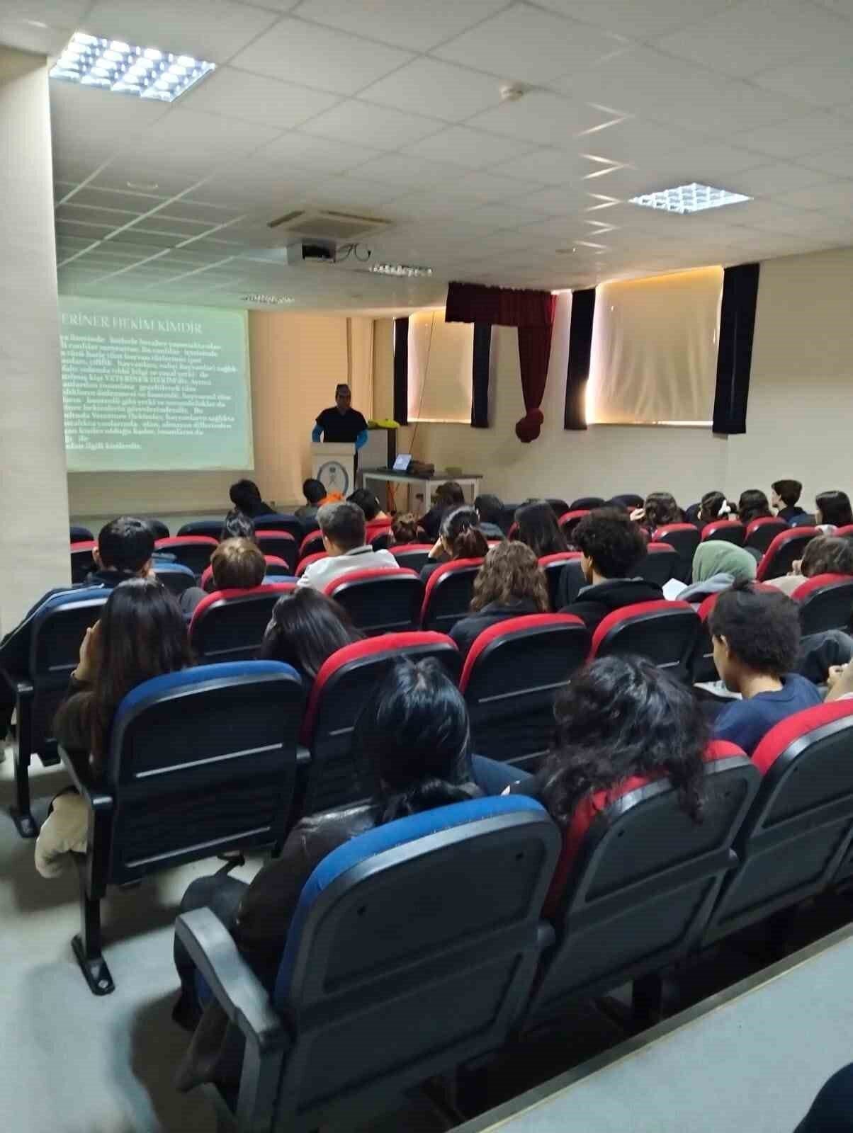 Kemer Belediyesi Hayvan Barındırma Tedavi ve Rehabilitasyon Merkezi görevlileri Göynük Fen Lisesi öğrencilerine veteriner hekimliği hakkında seminer verdi.