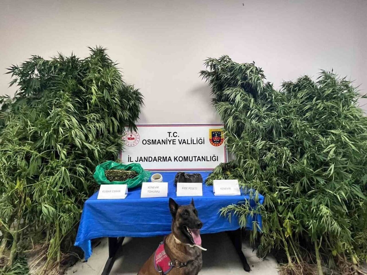Edinilen bigiye göre, Osmaniye İl Jandarma Komutanlığı ekiplerince uyuşturucu madde imalatı ve ticaretiyle mücadele çerçevesinde yapılan istihbari çalışmalar neticesinde, Sumbas ilçesi Yeşilyayla köyünde tespiti yapılan bir adrese operasyon düzenlendi. Uyuşturucu madde arama köpeği ile adreste yapılan aramada 50 kök kenevir bitkisi, 449 gram kubar esrar ve 169 gram kenevir tohumu ele geçirildi.