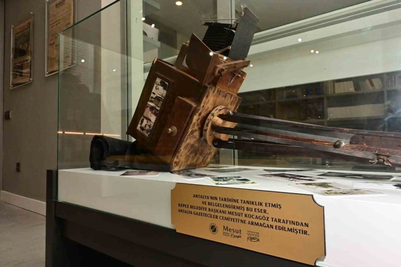 Kepez Belediye Başkanı Mesut Kocagöz, Antalya’nın tarihine tanıklık etmiş alaminüt fotoğraf makinesini, Antalya Gazeteciler Cemiyeti (AGC) tarafından oluşturulan Basın Galerisi’ne hediye etti.