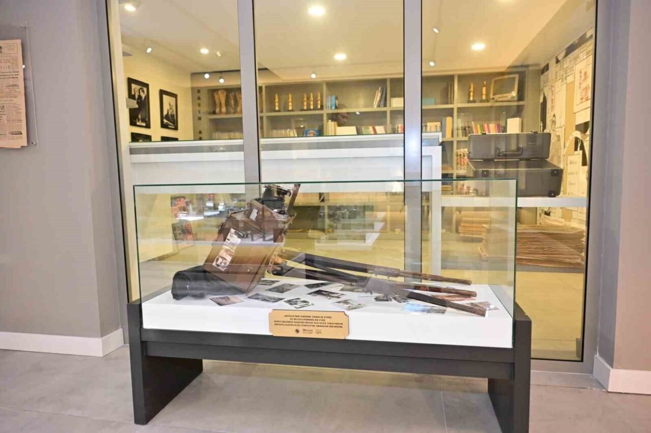 Kepez Belediyesi hizmet binasında bulunan ve kültür, sanat, sosyal yaşam ile belediye tarihini anlatan müzede sergilenen tarihi alaminüt fotoğraf makinesi, artık Antalya Gazeteciler Cemiyeti’nde sergilenecek. Kepez Belediye Başkanı Mesut Kocagöz, AGC’yi ziyaret ederek Antalya basın tarihinin önemli parçalarından biri olan fotoğraf makinesini, AGC Başkanı İdris Taş’a teslim etti. Başkan Kocagöz, ziyaret sırasında AGC bahçesinde sergilenen, Kurtuluş Savaşı döneminde İzmir’in işgalinin ardından makineleri Antalya’ya kaçırılarak basımı sürdürülen “Antalya Anadolu” gazetesinin basıldığı tarihi baskı makinesini inceledi. Ardından AGC Başkanı İdris Taş’ın rehberliğinde, basın tarihine ışık tutan fotoğraflar, gazeteler, kitaplar ve gazeteciliğin ayrılmaz parçaları olan ekipmanların sergilendiği Basın Galerisi’ni gezdi. Galeri envanterinde yer alan ve Antalyalı gazetecilerin hatıralarını kaleme aldığı “Neler Yaşadık Neler” adlı kitabı inceledi.