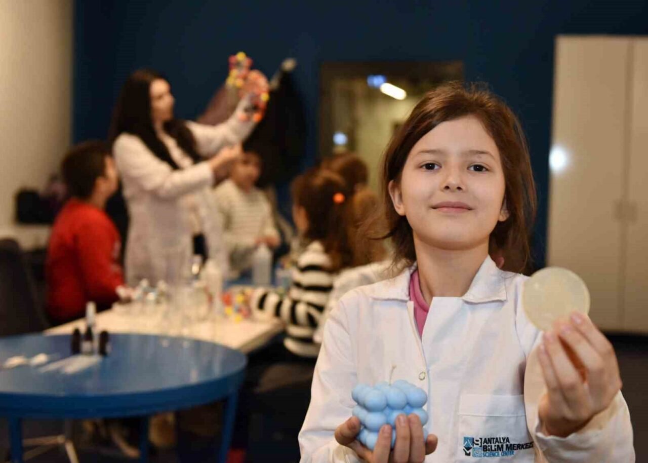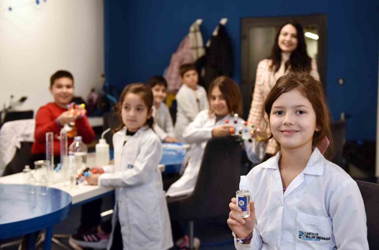 Kepez Belediyesi Antalya Bilim Merkezi’nin atölyelerine gelen öğrenciler, çeşitli üretimler yaparken aynı zamanda etkili düşünme yollarını ve problem çözme yeteneklerini de geliştiriyor. Pazartesi hariç her gün sabah ve öğleden sonra atölyeleri olan merkezdeki fen bilimlerini tercih eden çocuklar, laboratuvar tekniklerini kullanarak florürsüz diş macunu, parabensiz şampuan, kokulu mum ve sabun gibi günlük hayatta kullandıklarını ihtiyaç malzemelerini üretiyor.