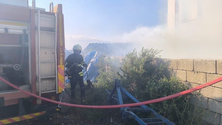 Hatay’da odunlukta çıkan yangında tüpler patlamadan çıkarıldı. Yangın, Kırıkhan ilçesi