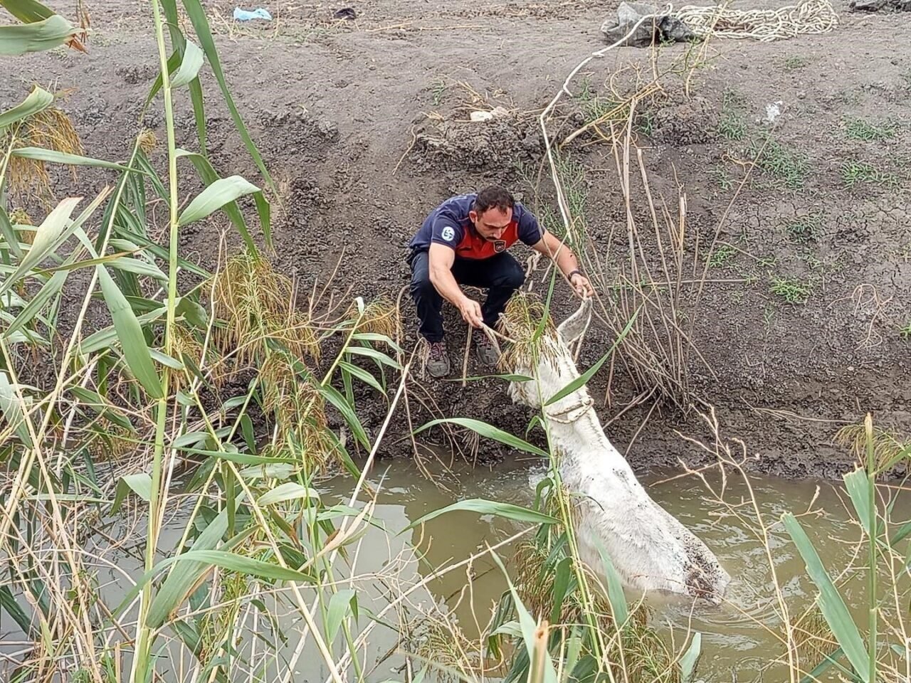 Hatay’da sulama kanalına düşerek mahsur kalan eşek, itfaiye ekipleri tarafından kurtarıldı.