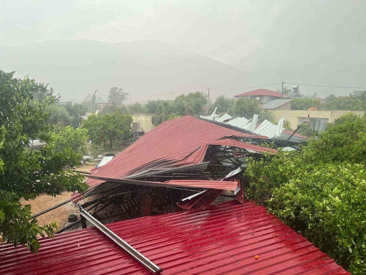 Meteorolojinin uyarsını sürdürdüğü yağışlı hava ve kuvvetli rüzgar Kozan’da etkili oldu. Bölgesel olarak etkili olan sağanak yağış ve fırtınaya vatandaşlar hazırlıksız yakalandı, zor anlar yaşandı. İlçeye bağlı Acarmantaş Mahallesi’nde Halil Seğmen’e ait evin çatısı uçtu. Fırtına yaşanmadan dakikalar öncesinde ev sahiplerinin bahçede otururken aniden eve kaçış anı ve sandalyelerin devrilmesi ise güvenlik kamerasına yansıdı.