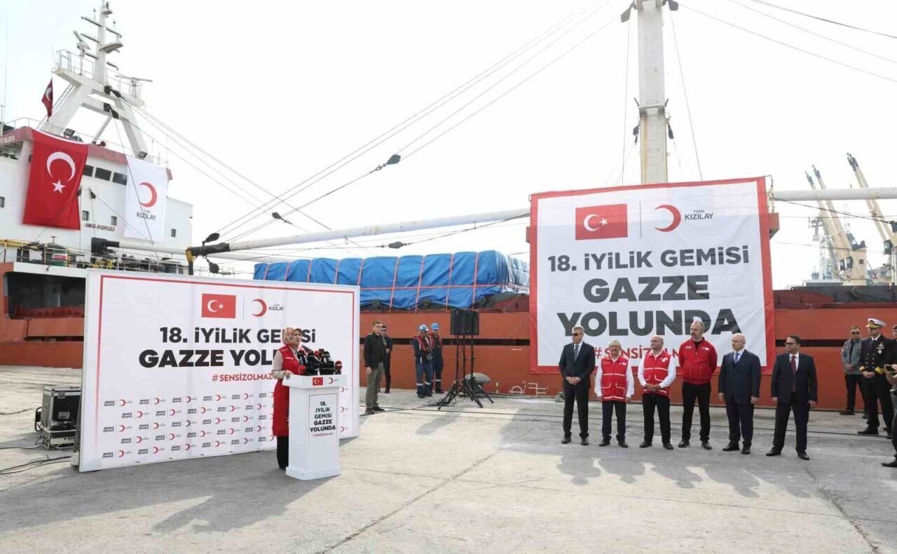 Gazze’de sağlanan ateşkesin ardından çalışmalarını hızlandıran Kızılay, bölgedeki acil ihtiyaçları karşılamak amacıyla hazırlanan ’18’inci Gazze İyilik Gemisi’ni Mersin Limanı’ndan törenle uğurladı.