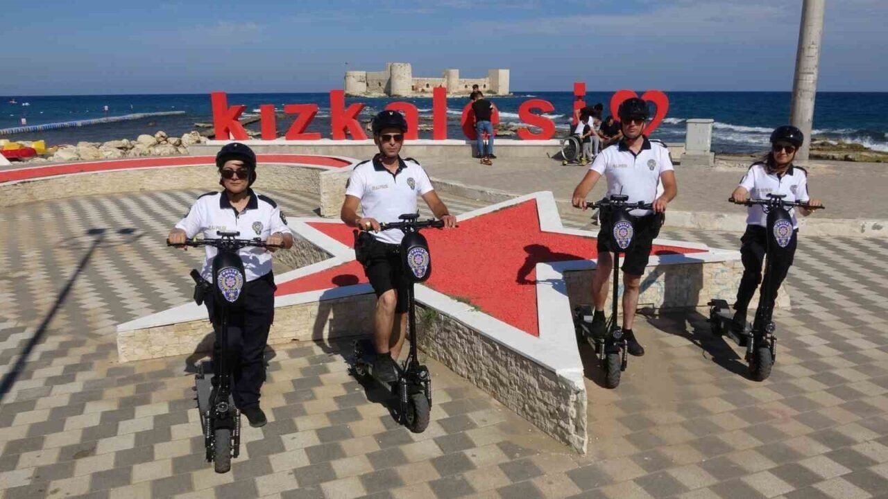 DOĞU AKDENİZ’İN GÖZDE TURİZM MERKEZLERİNDEN MERSİN’İN ERDEMLİ İLÇESİNDEKİ KIZKALESİ’NDE OLAYLARA DAHA HIZLI MÜDAHALE EDİLMESİ AMACIYLA PLAJ POLİSLERİ ELEKTRİKLİ SCOOTER ARAÇLARIYLA GÖREVE BAŞLADI.