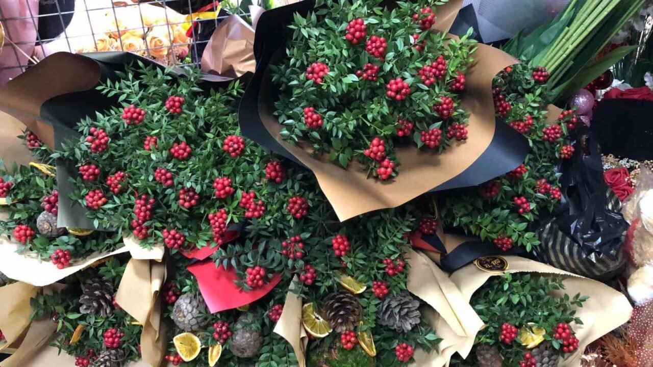 Isparta’da yoğun ilgi gören kokina çiçeği, hem dekoratif güzelliği hem de sembolik anlamıyla dikkat çekiyor. Yeşil yaprakları ve kırmızı meyveleriyle estetik bir görünüm sunan kokina, çiçekçilerde 300-350 TL arasında alıcı buluyor.
