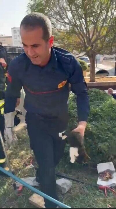 Olay, Rahime Hatun Meydanındaki konteyner çarşıda meydana geldi. Konteyner ile duvar arasından gelen kedi sesini fark eden vatandaşlar durumu 112 Acil Çağrı merkezine bildirdi. İhbar üzerine bölgeye Osmaniye Belediyesi İtfaiye Müdürlüğü ekipleri sevk edildi. Ekipler dar alanda mahsur kalan yavru kediyi titizlikle çalışarak kısa sürede çıkarmayı başardı. İtfaiye görevlilerince mama ve su verilen yavru doğal yaşam alanına bırakıldı.