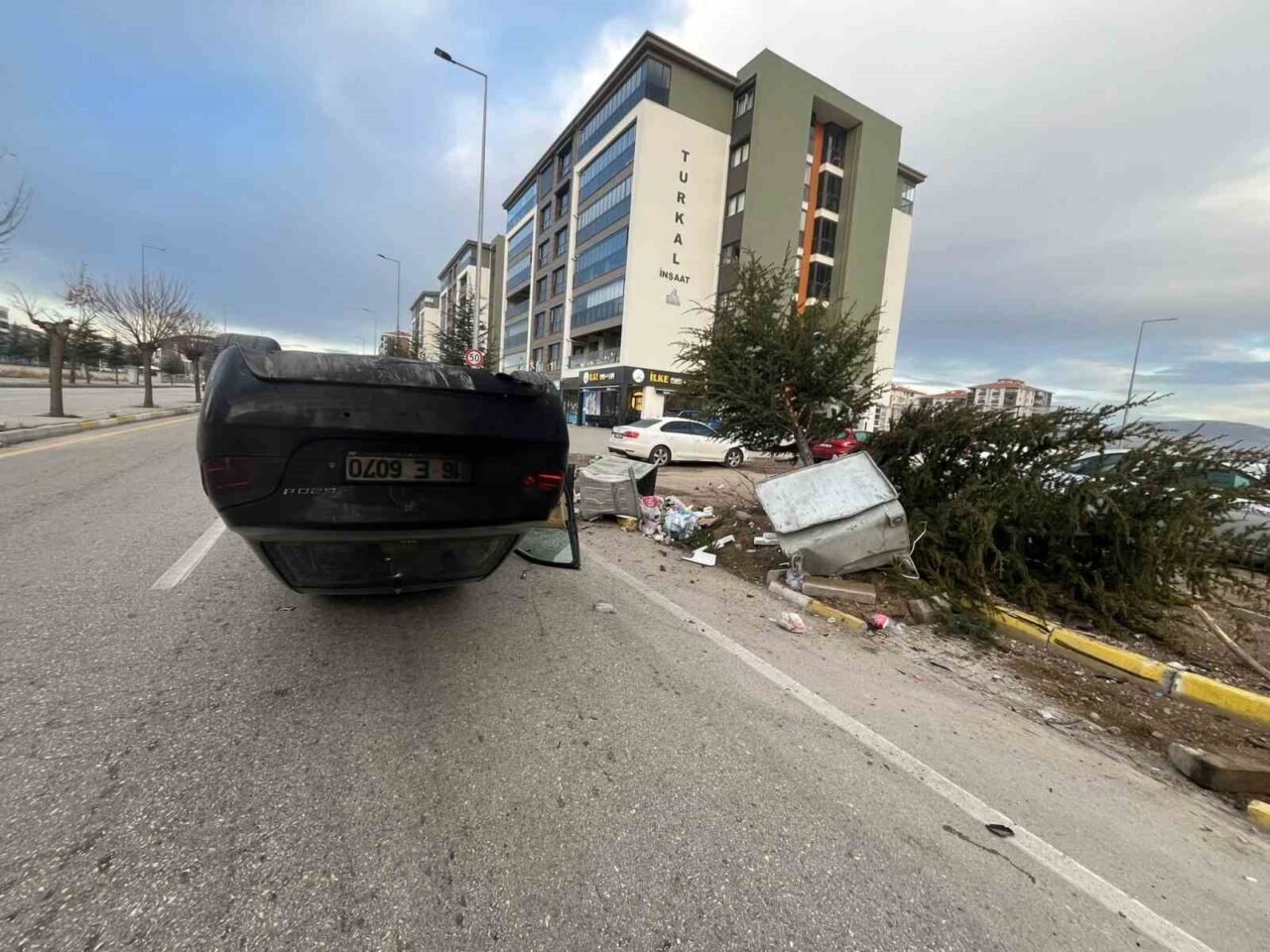 Isparta’da kontrolden çıkan lüks otomobil ağaca çarpıp ters döndü. Sürücü hafif yaralandı.